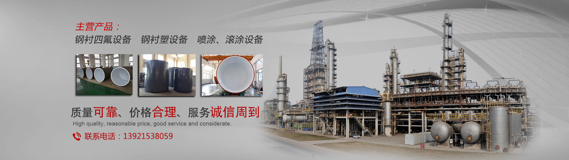 我公司專業生產防腐設備,主要產品有:鋼襯四氟、鋼襯四氟儲罐、反應釜內襯四氟、鋼襯四氟管道,四氟換熱器、PTFE襯裏設備、鋼襯塑儲罐、鋼襯塑管道、攪拌槳等等。產品可應用於化工、氯堿、海水淡化、印染、顏料、儲運、電廠、稀土、冶金、電子、製藥、釀造等行業...